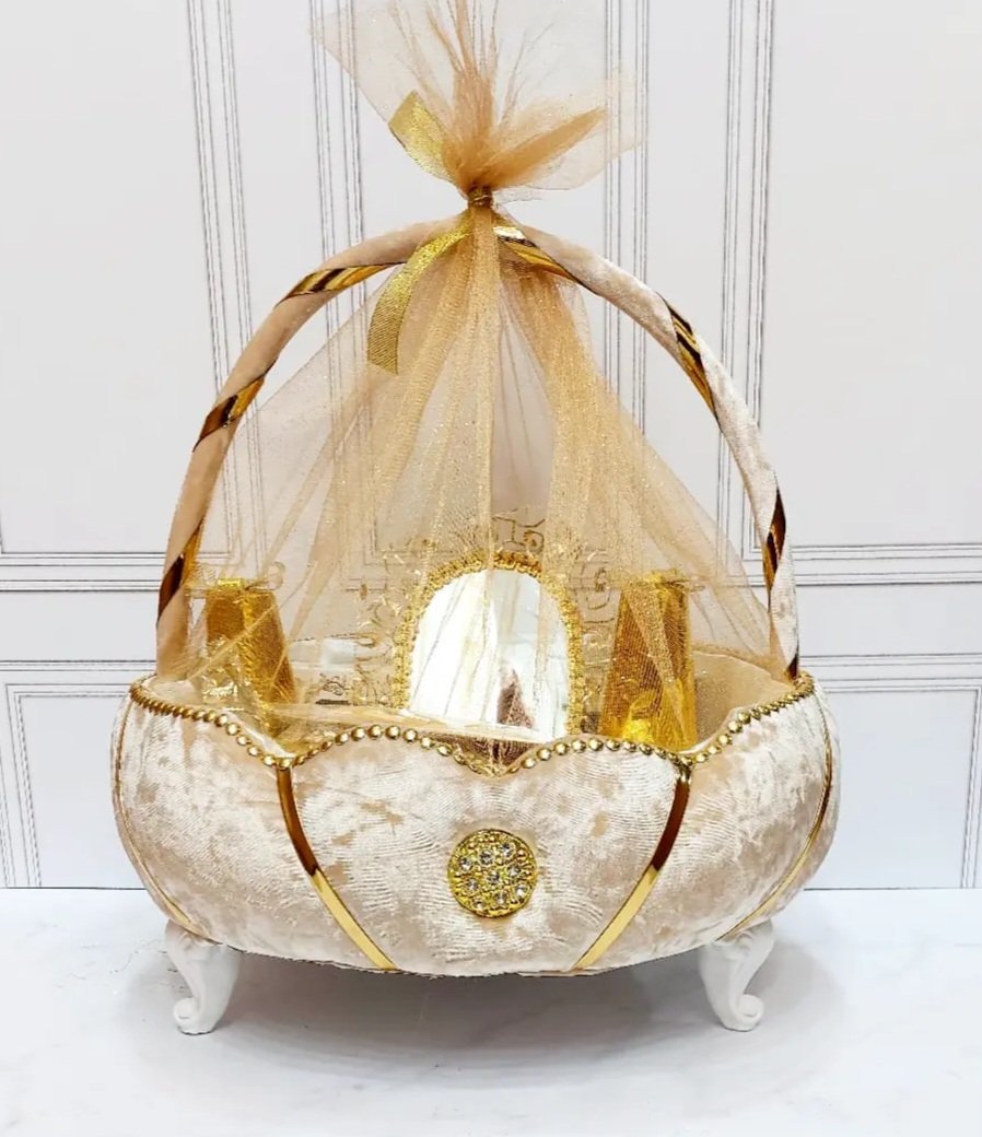 طبق حنة موديل سلة اللون Begie بالذهبي. دوزان سامبل