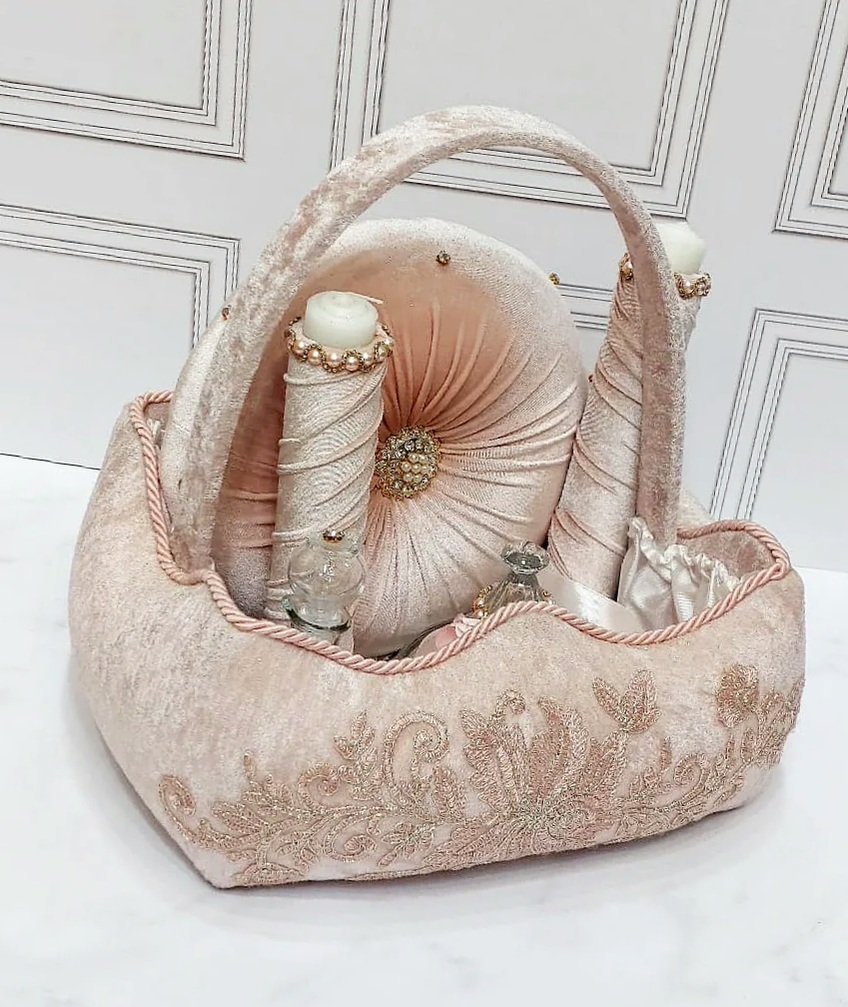 طبق حنة موديل سلة دوزان مغلفين بالقطيفة