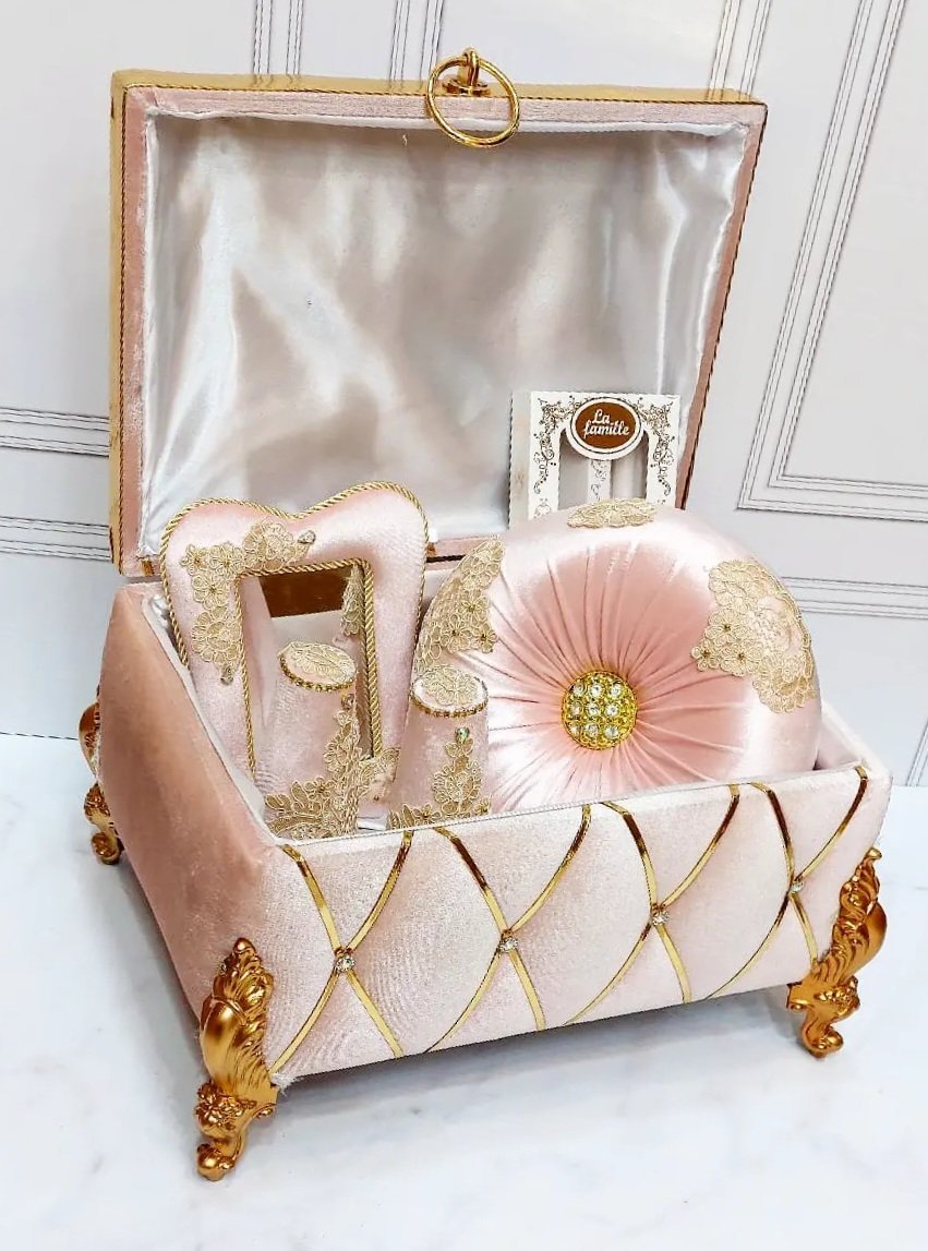 طبق حنة موديل كوفر اللون rose دوزان مغلفين بالقطيفة