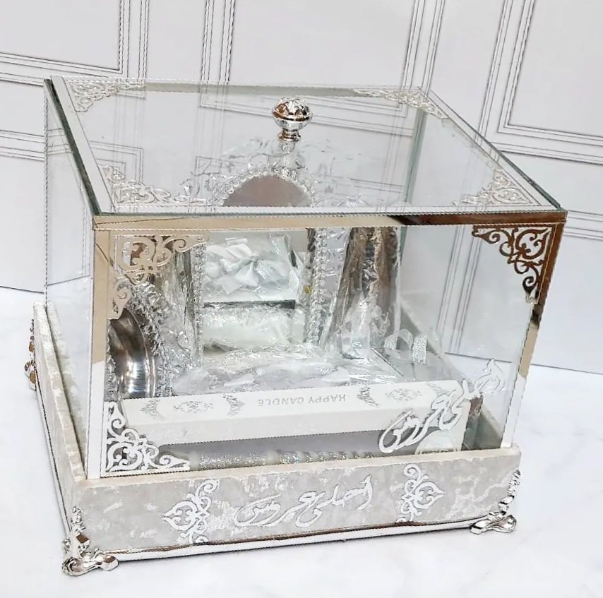 طبق حنة موديل كوفر بالزجاج ابيض بالفضي